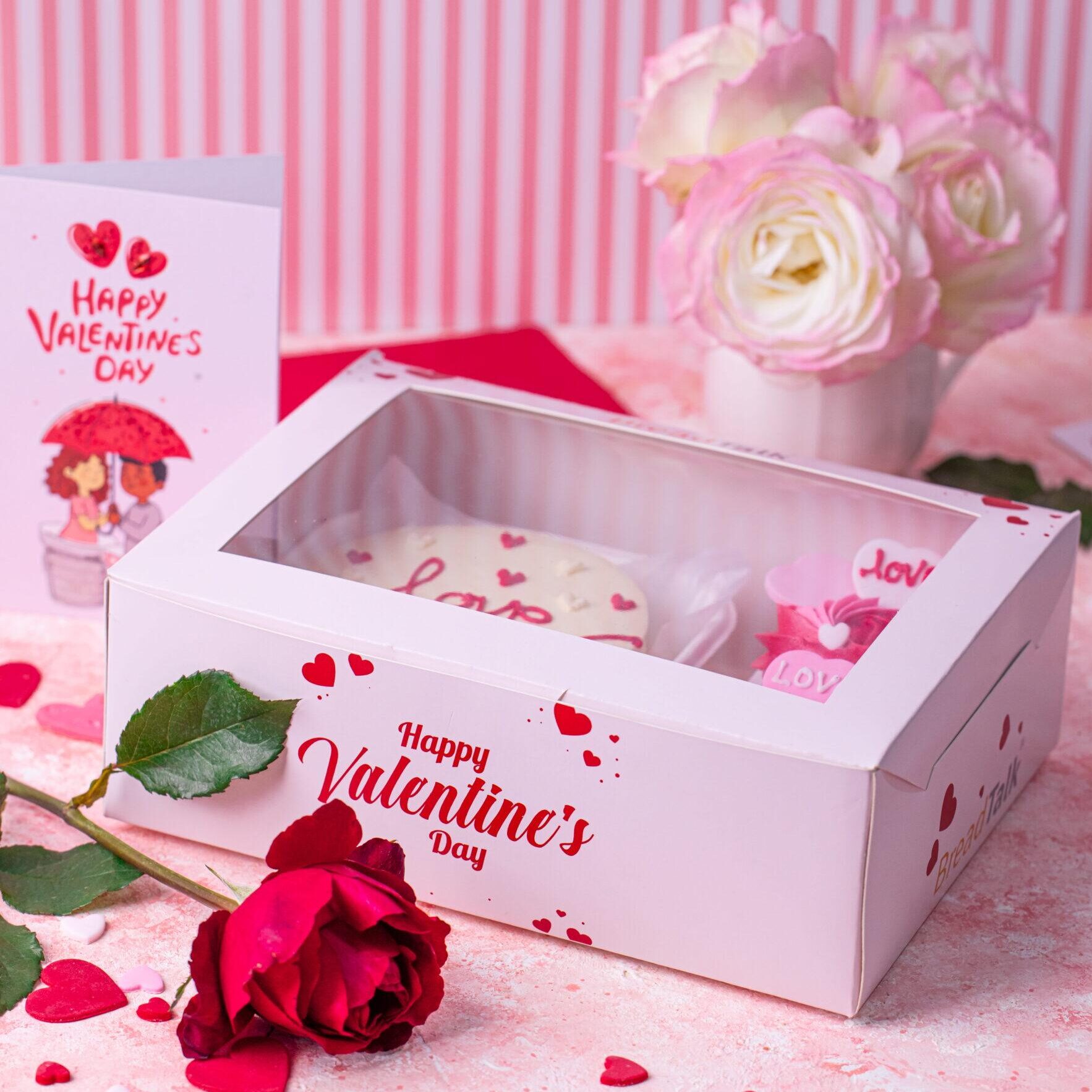 Gift box including Ribbon base bento cake and 02 cup cakes